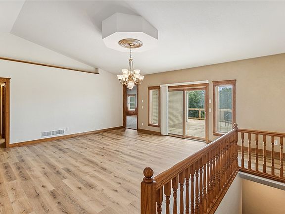 Come explore all this 19.56 acres has to offer you! 2904 sq. ft ranch home - 4 bedrooms and master suite- 3 1/2 baths- full finished walk out basement with kitchen - upper & lower family rooms - large dining area and kitchen - loads of storage - 2 laundry rooms - large wrap around deck on back that overlooks the pond. 3 car attached garages extra deep and wide - several extra rooms- walk-in closets - 50 X 72 metal shop building concrete floor and loft area (one stall heated) also Metal shop 50 x 80 concrete floors (one stall heated with office and 1/2 bath) and loft above. Red barn 30 x 38 with concrete floors - several stalls and steps to upper left - 2 different pasture areas with 8ft fencing with gates & 4 hydrants all ready for your hobby farm needs! Dock on the large pond and bridge to island - also smaller pond behind house -ponds are stocked with fish. Ground around is in grass hay. Come see this one and live out your dreams! Just one mile of gravel and minutes to Pella!