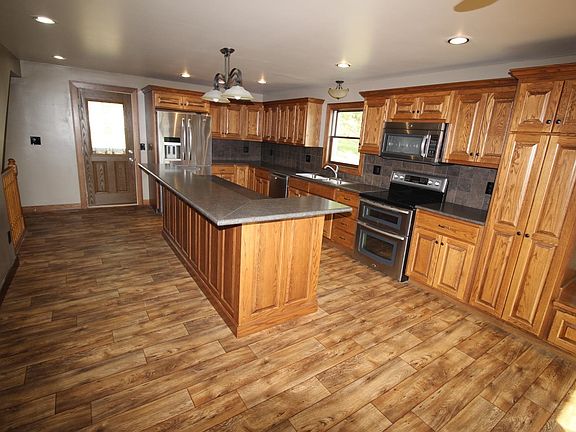 Updated 2 story home with attached heated garage on 3.75 acres. A large newer kitchen with island, and plenty of room for family and guests. There is an updated bathroom with double sinks, jetted tub, shower and attached closet. The lower level has been finished with a bathroom with shower, laundry, family room and storage room. This property can be purchased with an additional 15.65 acres that includes a heated shop, barn, machine shed, cattle shed, pasture and pond. The entire property is listing number 145907. Check it out!