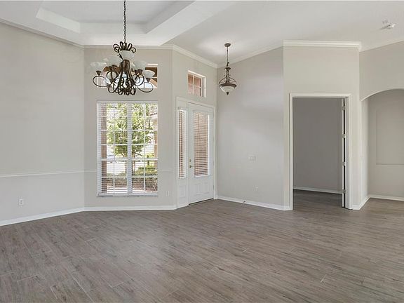 - Interior Features: Ceiling Fans(s), Living Room/Dining Room Combo, Master Bedroom Downstairs, Split Bedroom, Crown Molding, Walk-In Closet(s), Window Treatments, Open Floorplan, Eating Space In Kitchen, Tray Ceiling(s)