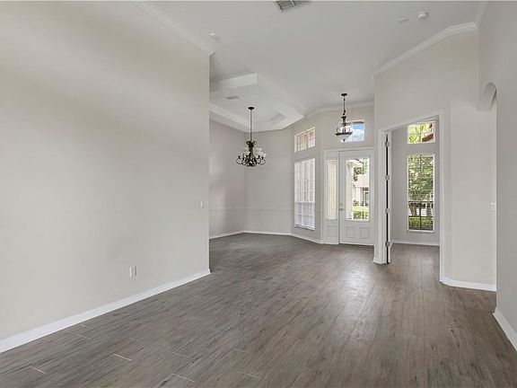 Beautiful Pond Front home in Gated Community. Spacious, Bright & Open Floor plan with 4 Bed/4 Bath, plus Office and Bonus Room,12' ceiling & Crown Molding.Kitchen features Wood Floor and 42" cabinetsLarge kitchen and family room with a breakfast nook. Recent upgardes include new flooring throughout and fresh paint inside. ( outside was painted just a few years ago ) Corian counter tops in kitchen with 42 inch cabinets. Large covered lanai area facing the pond to enjoy the great weather. Master bath with shower and seperate tub, dual vanities. Tray ceiling in master bedroom. French doors leading to outside patio. Oversided 3 car garage for storage. Large secondary bedrooms. Home is painted a netural colors. HOA Fees include all amenties pool,tennis, volleyball,clubhouse, playground, gated community