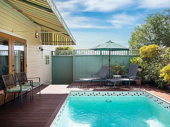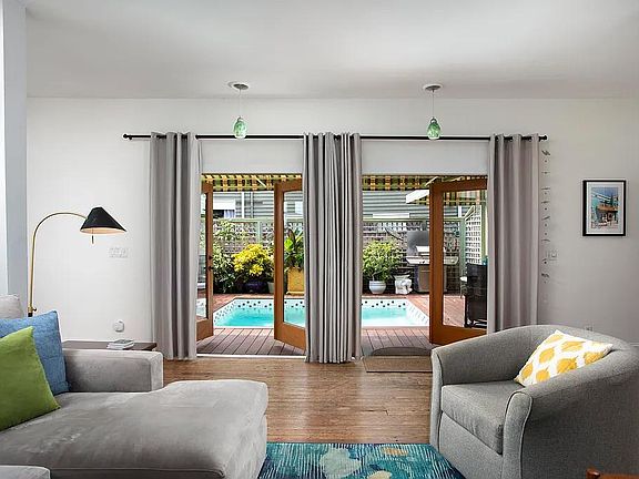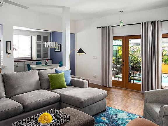The perfect getaway for a long stay in Key West. This is a monthly vacation rental. A private pool and patio area lie behind a green gate on a quiet lane in Old Town, Key West. High ceilings and plenty of windows are the highlight of the open floor plan living space. This is a beautifully decorated retreat outfitted with everything you need for a perfect vacation. There is a 28 day minimum. There are 1200 square feet of indoor living space and a small pool and deck area partially shaded by awnings. One bedroom opens onto the pool deck through French Doors and the other bedroom is a charming interior room. Both bedrooms have on-suite bathrooms and TVs. There is a full kitchen and separate laundry room. The wi-fi is strong with 2 accounts and a booster. The kitchen is a fully-stocked chef's kitchen with island and quartz countertops. The house is a two story building and you will be on the first level. The upstairs apartment is totally separate with no access to your pool and patio. This beautiful home is located 5 blocks to either the Historic Seaport or Duval Street. It is on a one-way lane adjacent to the Historic Key West Cemetery. You can walk or bike to many restaurants and sites, beaches and shops. Bikes are provided and are included with your rental. They must be kept locked at all times or they will be "borrowed." To preserve the cleanliness and condition of the house and furnishings pets are not allowed. Please see rental agreement for actual cancelation policy. Rental price increases during high-season months. Ask for cost. This property is currently not available for January, February and March 2026. April rent is $7,500.