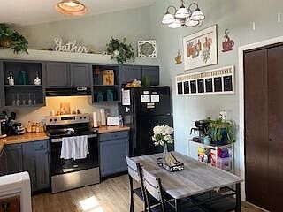 - Description: newer laminate wood flooring, wood counter tops