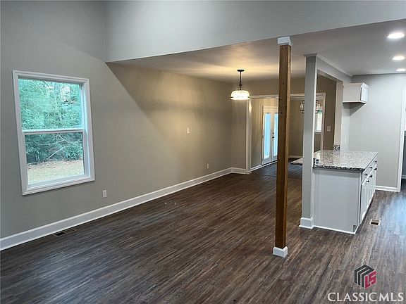 The home is updated in the modern tradition, and has three bedrooms 2 1/2 baths with the master on the main level. When you enter the front door you immediately see into the completely renovated kitchen open to a large great room. Off the great room is another room that could work as a family room or as a office or dining room. There is new LVP flooring throughout the common areas, and new stainless steel appliances, granite countertops. Head down the hall to the master bedroom and you will find a nice size room with a walk-in closet, and a fantastic master bath with a oversized tiled shower. Head upstairs and you see two large bedrooms and a full bath, with brand-new carpeting. Located close to everything, and in the Oconee County school district.