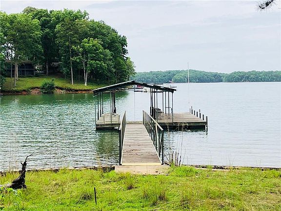 Perfect affordable weekend get-away. This rustic Lake Hartwell waterfront enhanced home offers one level living plus extra room for family or guests. With two bedrooms and one full bathroom, Large lakeside living area for entertaining, plus a large living room with beautiful stone fireplace, this home has it all. The back is a gentle slope to the deep water lakeshore with covered dock. This home has it all; convenience to I-85, deep sailboat water covered dock at an affordable price.