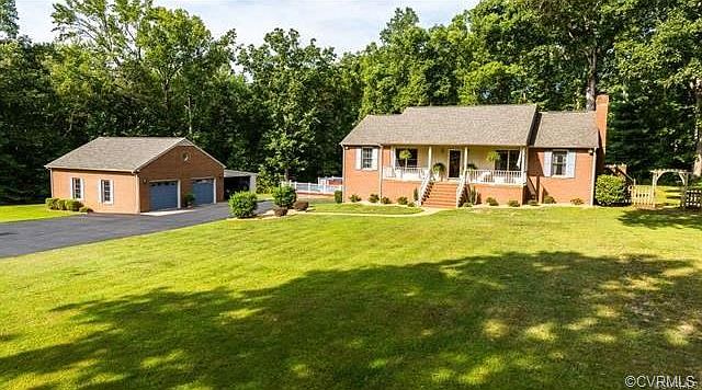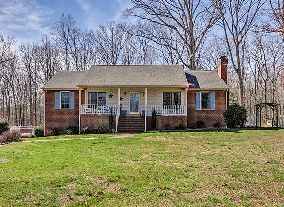 All brick rancher with full basement located on a beautifully manicured 5 acre parcel located in Western Powhatan County. This perfectly maintained home has hardwood flooring throughout with carpeted bedrooms and ceramic baths. A large great room complete with brick fireplace with gas logs opens up into a completely remodeled kitchen with granite counter-tops and ceramic back splash and stainless steel appliances. Kitchen opens up into the dining area and the screened porch with vaulted ceiling. The screened porch overlooks an oversized deck area & beautiful, sparkling 18'x33' pool. Back inside, a large master bedroom with full bath along with 2 more bedrooms & a full bath complete this warm and inviting, move in ready home. Other features inside include solid wood doors, central vac system, walk up attic with tons of storage, gas heating in basement, wired for generator & wainscoting in the living room area. The exterior features an over sized 28'x32' garage with a built on 14'x32' storage shed and paved driveway. Updated and turn key condition!