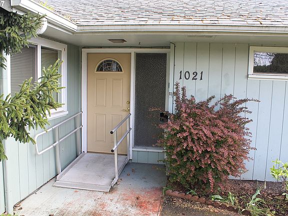 Great location!! Large lot off of Coburg Rd. The home features 2 bedroom and 2 full bathrooms with 1 bedroom and 1 bathroom on each side of the living space. Lots of built-ins throughout the house. Kitchen w/ all appliances included. The backyard has a large out building and a tool shed. Lots of potential! Being SOLD "AS IS"