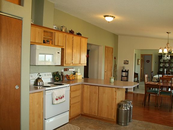 Built in 1997 & in excellent condition, this 4 bedroom home is all set for new owners! Large living rm, a family room w/vaulted ceilings & dining rm w/pellet stove! Large kitchen w/plenty of counter space & terrific pantry storage! The Master bedroom has w/i closet & full bath with a garden tub. Large laundry room w/ access to the back yard & shop. Deck on the wind-protected east side of home. Beautiful views from anywhere on the 3 acres! 30X30 insulated shop w/ electrical & 2 elec. gar. doors.