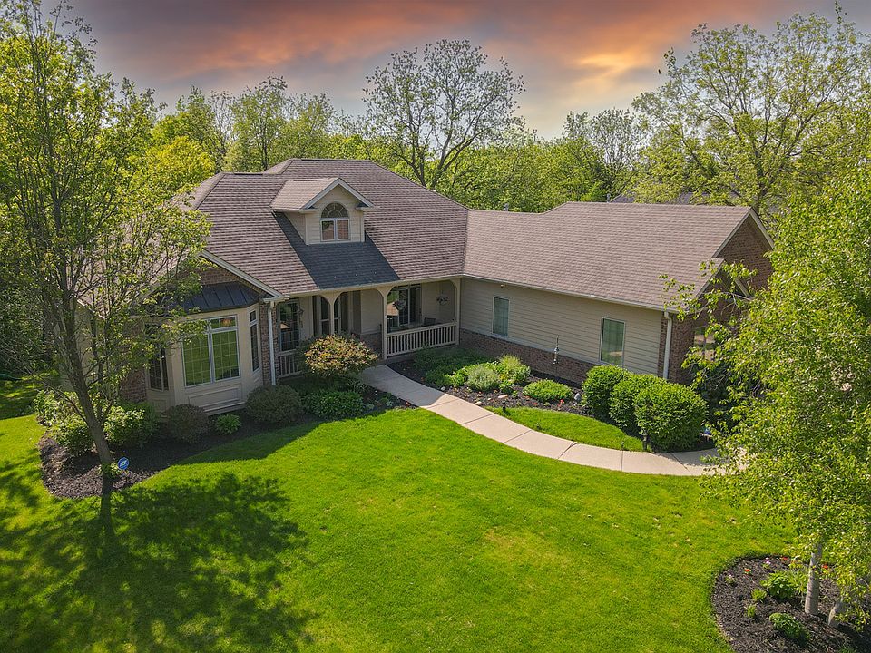 Custom built executive walk out ranch in a secluded wooded setting will please the most particular buyer. From the solid Maple doors and trim to the volume ceilings you'll appreciate every nuance of this very special, incredibly maintained home. Grand entry welcomes you to the home and opens to the formal dining room large enough for the biggest of gatherings. The great room focal point is the gas fire place and the wall of windows seemingly brings the wooded setting indoors. Kitchen with recent upgrades including quartz counters and newer appliances is surely the center point of the home and opens to the spacious composite deck overlooking the wooded setting The split floorplan offers two large bedrooms served by a full bath on one side of home and the spacious master on the opposite site. Master suite has soaking tub and separate shower. Custom tile work surrounds the master bath with oversized walk in shower and separate soaking tub. The walkout lower level offers more living space with 8' ceilings and ample windows make this level incredibly livable. The large rec room offers another fireplace and a custom built wetbar. Two more bedrooms on this level as well as a flexible space for another office, exercise room, or craft room. Huge 3+ car garage is heated as well as offers separate hot and cold water for washing cars in cooler weather. Fully sprinkled mature custom landscaping rounds off this idyllic setting.