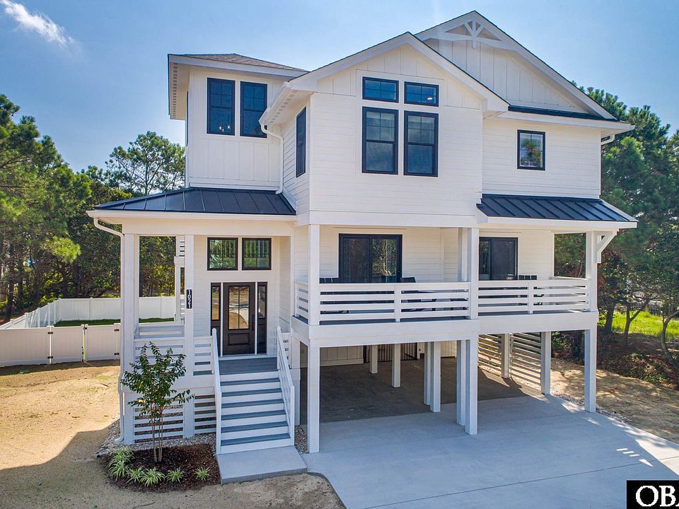 LIKE NEW and just one house down from the beach access, this 5-star rental property built in 2023 blends modern design with the laid-back charm of Corolla. This custom Whalehead home offers 4 bedrooms, 3 full baths, 2 half baths, and every feature today’s Outer Banks buyer is looking for. Step inside to a light-filled great room with vaulted ceilings, quartz countertops, stainless steel appliances, and a striking deep-blue island with tiled backsplash. The open kitchen, dining, and living areas flow seamlessly onto a spacious screened-in porch, ideal for dining or relaxing in the ocean breeze. A lofted space off the living room offers flexibility as a home office, reading nook, or game area. The top-level primary suite features multiple closets, a soaking tub, and a tiled shower with natural light. On the middle level, you’ll find three additional bedrooms (two total en-suites), a flexible den, and a convenient laundry room, all designed with comfort and practicality in mind. The plans were also designed to allow for an elevator to be installed in the three vertical closets spanning all floors, adding long-term versatility and value. Outdoor living shines with a saltwater pool, poolside bar with TV and mini-fridge, multiple decks with TREX deck boards, and a convenient outdoor shower and half bath. A spacious carport allows for dry entry, while additional features include gutters, an irrigation system, LP Smart Siding, LVP flooring, tiled showers, solid wood doors, and TURN KEY furnishings, all lightly used. Located in the heart of Whalehead, this home is a short walk to wide sandy beaches and minutes from shops, Whalehead Brewery, and Big Buck’s Ice Cream, making it the ideal coastal investment or getaway.