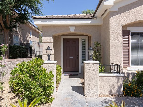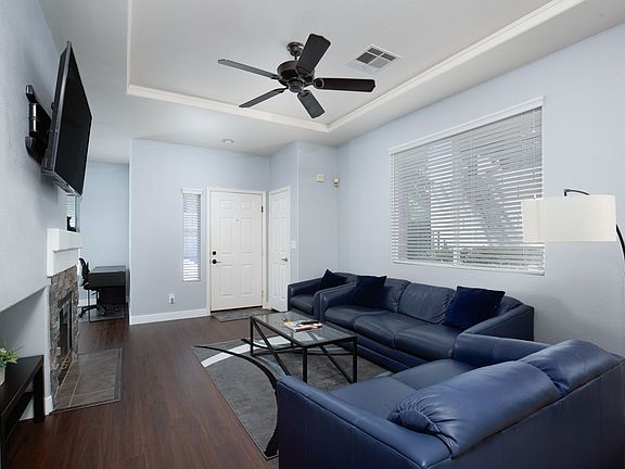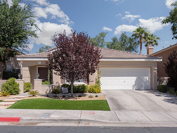 Welcome to this gorgeous single story home in the desirable Summerlin neighborhood of San Marino. This charming house features new wood flooring throughout, granite counters in the kitchen, a breakfast bar for casual dining, and a cozy fireplace in the living room. The newly landscaped front and back yards boast synthetic turf for easy maintenance, perfect for enjoying the beautiful Las Vegas weather. With two bedrooms plus an office, this home offers plenty of space for comfortable living. Ceiling fans provide added comfort, while the convenience of single story living makes this house a must-see. Experience the best of Summerlin living in this move-in ready home.