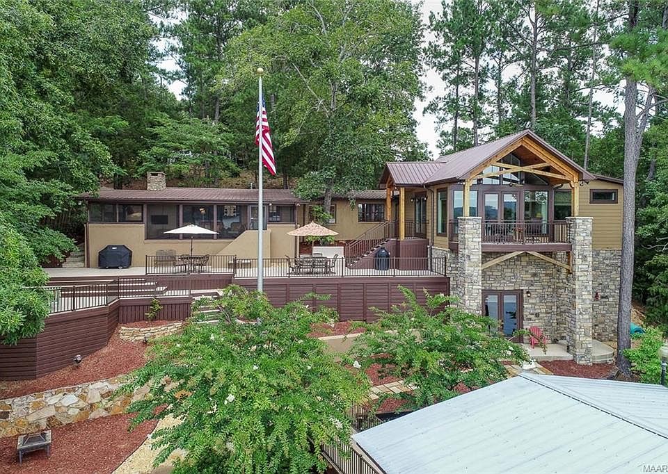 Exquisite lake home in Cargile Creek facing the main channel with a MILLION DOLLAR view and gentle flat slope, plus paved roads 15 minutes off I-65. 4 stall boathouse, 3 stalls enclosed and electric lifts for all 4 water toys, atop boathouse is an enclosed recreation room. Main house has been updated with the genuine feel of lake living at its finest. Addition to home completed in 2017 custom built and doubles the overall size, includes the 4th and 5th BR's with full baths. The 5th bedroom could also become a large entertainment room. Custom built with 12" poured concrete walls for your safety during inclement weather conditions. The interior features of this 5 BR, 4 BA home include large flowing living spaces, tile floors, bamboo, wood laminate and carpet. Outside screened in porch and decks with maintenance free composites and Aluminum hand rails. Detached storage and additional parking for trailers and friends at back of property. This is a "Must See".