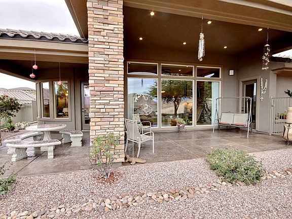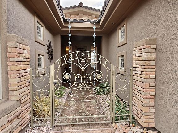 Spectacular home with all the upgrades you will ever need. Starting with the outside of the home, the driveway is stamped and stained, a wrought iron gate frames the front entry.The garage has an epoxy floor and room for 3 cars. The backyard is paradise with a built in hot tub, firepit and an amazing view . Inside you will find Knotty Alder wood doors, full french glass doors, custom kitchen, central vac, 2 water heaters, Hunter Silhouette blinds, all bathroom fixtures are rubbed bronze, full stone feature wall with fireplace, marble tile to ceiling in master shower, water softener, lighted water wall feature, jetted tub in master, wired for surround sound, there are deep sinks in both the laundry room and garage, and so much more. The owners have spared no expense in all the luxurious upgrades they have provided that you must see to appreciate. Located in a golf course gated community.