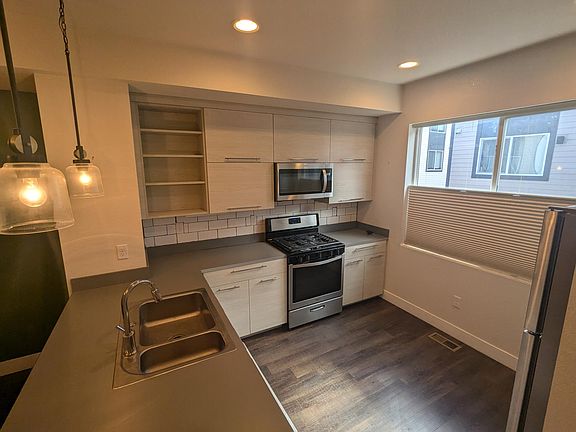 MOVE IN READY! Look no further than this 3 story modern townhome unit in West Line Village! The 1st floor offers a non-conforming third bedroom or office/study with an attached 1 car garage. The 2nd floor leads to an updated kitchen which overlooks the living room in an open concept floor plan. It also has a bathroom and balcony access. The 3rd story features the primary bedroom with en-suite bathroom and large closet. Another bedroom and bathroom as well. Quick walking access to gulch trail and the RTD Sheridan station and close proximity to Sloan's Lake. Being located close to 6th Ave makes the commute to the mountains or the city a breeze. Move in date 9/1 for a one year lease. West Line Village provides snow removal and landscaping. Amenities: Gas Stove, Refrigerator, Microwave, Washer, Electric Dryer, Dishwasher, new up-down blinds throughout, Central AC, Balcony, Private Fenced Backyard, 1 Car Garage, 1 Assigned Uncovered Parking Spot Things to know about this property: *No smoking. *Renter's insurance is required. *Tenant is responsible for utilities. *Monthly pet fee of $35 per pet. *Non-refundable pet fee of $150 for the first pet and $100 for each additional pet. *Refundable security deposit equivalent to one month's rent Pets are OK (approval needed), fees apply.