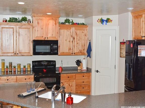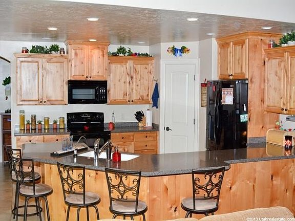 Exquisite home with Amazing Views in Santaquin. This property sits in the Foothills of Santaquin on a corner lot. 7 bedrooms and 4.5 baths with a 4 car garage fit for a king. There are no expenses spared on this custom home. Interior finishes are tile floors, knotty alder cabinets, recessed lighting, large bedrooms and exercise room. Exterior has large play gym, in ground trampoline and full landscaping. You will not be disappointed! Buyer/Broker to verify all information.
