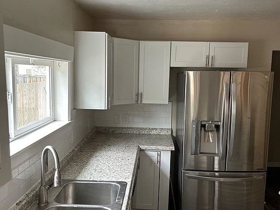 Presenting a charming 3-bedroom and 2-bath home. This property is a delightful find for homeowners or investors seeking a rental property. Upon entering, you'll be greeted by the open living and dining areas, creating a warm and inviting atmosphere. The quaint kitchen boasts subway tile, stainless steel appliances, including a French door refrigerator, and white cabinetry. The addition of a butcher block counter bar allows for casual dining, adding convenience to daily life. The master bedroom with attached full bath and large closet provides a private sanctuary. Two additional bedrooms, share full hall bath, ensuring ample space for family members or guests. The fenced back yard features a storage shed and convenient alley access. The patio area invites outdoor living and dining, while towering trees and a covered front porch create an inviting ambiance. The unfinished basement provides ample storage options, while RV parking adds to the flexibility and functionality of the property.