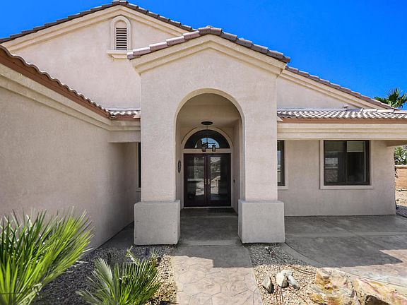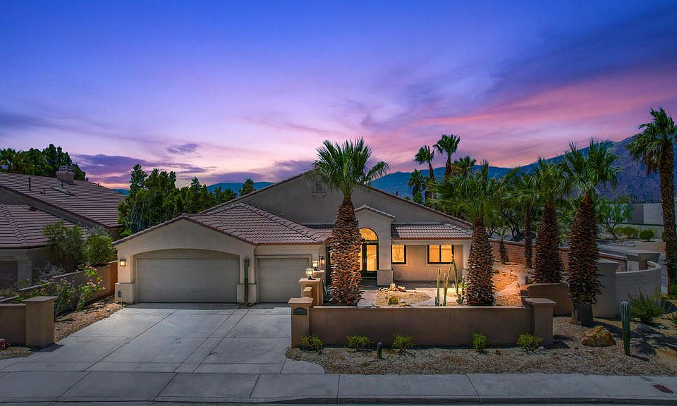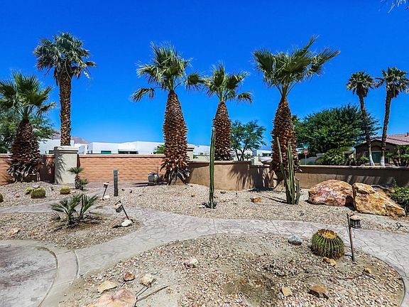 Vintage Palms is a hidden away neighborhood with approx. 60 homes and no HOA. Built in 2000 this 3 bedroom, with open den and 2 and 1/2 baths is perfect for entertaining. The granite kitchen and stainless appliances also boast a 380 bottle capacity wine frig and wrap around butler pantry and there is a Laundry room. High ceilings and large windows overlooking the very private pool and spa keep the house light and bright. Primary suite has its own entrance to the backyard. This home is totally walled and located on a 10,019 sq. ft. corner lot. To make this already a bargain deal even better, there is a full three (3) car garage. SOLAR lease totally paid thru the 12 years remaining. Showings by Appointment only. This is not a bank and this property is not a foreclosure. Please call the listing agent for instructions. Listing broker & seller assume no responsibility and make no guarantees, warranties, or representations as to the availability or accuracy of the information herein. SEE PROPERTY DETAILS IN ATTACHED DOCUMENTS.