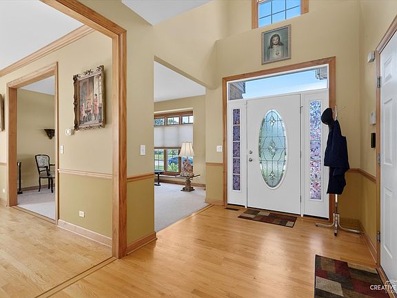 This tastefully updated 4700+ square foot home features 5 bedrooms with a bedroom and full bathroom on the main level and a 3 car garage. Large Lot - just under a half acre. The main level has an expansive kitchen with ample cabinet/counter top space, a custom backsplash, a nicely sized pantry, and sliders that lead to the newly redone deck overlooking the yard and patio area. The main level also features a large dining room, a living room with oversized windows, and a family room with a new gas fireplace. The second floor has 4 large bedrooms, a laundry room, and a huge master suite with a jacuzzi tub. The Finished English basement compliments the home with a bar area, an additional office/media room, an open living area, and a large storage room. A full list of updates will be included at the home with your tour, but are as follows: New A/C-Furnace (2023), New Electrical Panel fit for EV vehicles (2023), Deck updated (2023), Fireplace (2021), Driveway (2019). Water heater (2021), Carpeting Basement (2021), Water Softener (2021). This home is located in Huntley School District and is close to the schools, Kelliher Park, and close to Randall Road for shopping and restaurants.