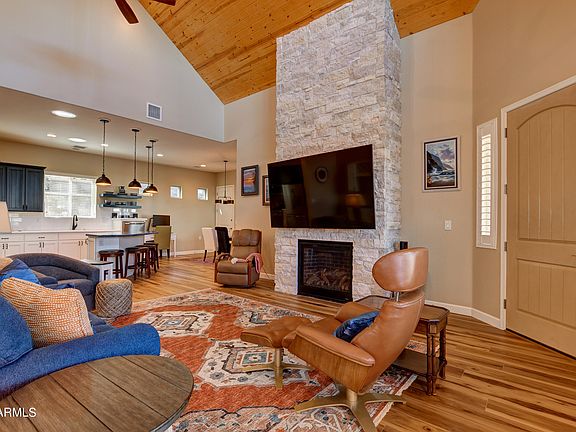 This new in 2022 beautiful Custom 2 Bedroom, 2.5 bath home in the thick pines subdivision of Forest Hylands, 1.4 miles to the Downtown Prescott Square. This turn key home is ready for immediate occupancy with loads of high end features. Central Vac, Security front door, Oversized 2 car garage with paver driveway along with side and backyard, upgraded fireplace with imported stone from Israel, Quartz countertops and Cambria counters on Island and bar area. The very tall ceilings in Living room with tongue and groove wood are very impressive. The bedrooms are good size ensuites and Master has a very nice size walk-in closet. Home has luxury vinyl wood flooring but the bedrooms are carpeted. Would make a perfect 2nd home. A rare new home find will not disappoint! Great full time or second home in the cool pines to escape the heat. Schedule ASAP!