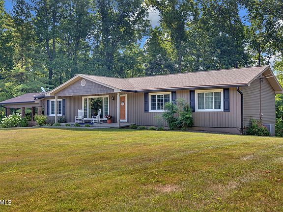 Hard to Find, Basement Ranch Home perfectly situated on a 1.23 acre lot on the desireable Fox Hunter Road. WELL MAINTAINED HOME WITH 1 YEAR OLD HVAC ; ROOF, SIDING, WINDOWS, AND MORE REPLACED IN 2018. Start your day on the front porch with incredible mountain views. Enter the living area with an expansive window bringing outside indoors, anchored with a woodburning fireplace and built-in shelving. Enjoy your spacious eat-in kitchen with stainless appliances, counter space for eating and a dining area that looks out to the private back yard. The main level features 2 bedrooms and 2 full bathrooms, along with a flex area at the side entrance. Make this flex area an office, den, or mudroom with laundry area. The full basement is equipped with another brick fireplace with built-in shelves and a woodburning insert, a half bath and laundry area. This large finished basement space is perfect for an extra large bedroom, a rec room or even separate living quarters. Sliding glass doors open to the private and peaceful back yard. This home is a short drive to the grade school, middle school and high school, and approximately 15 minutes to Hickory Star Marina at Norris lake!! Easy to Show! Call for a private tour! Sellers to offer a one year Home Warranty.