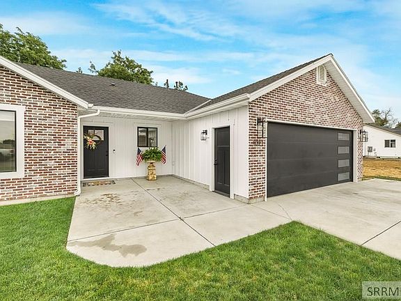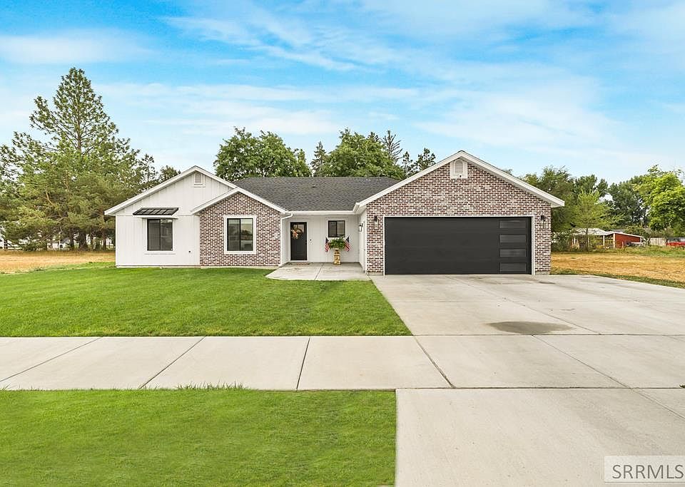 This breathtaking modern farmhouse blends rustic charm with contemporary elegance, and is centrally located just 5 minutes from town, it's steps away from top-rated schools, perfect for families with children from elementary to high school. The exterior showcases white board-and-batten siding, rustic red brick, and crisp white vinyl for a timeless yet modern look. Inside, a wide-open floor plan flows across high-end white durable tile, ideal for entertaining guests or keeping an eye on little ones. The dreamy kitchen features a large quartz island, deep apron-front sink, bright white upper cabinets with whitewashed rustic alder bases, brushed brass hardware, stainless-steel appliances, gold pendant lighting, and a gold heritage-style faucet. A raised coffered ceiling enhances the primary suite, which boasts a spa-inspired bathroom with a double-head custom-tiled shower. Additional highlights include a large laundry/mudroom with a subway tile accent wall and black honeycomb flooring, custom built-in closet shelving, privacy window treatments, central A/C, central vacuum, a high-end shingled roof, and an oversized two-car garage. Outside, a lush green yard offers the perfect setting for family gatherings and summer evenings, completing this comfy, cozy, and full-of-charm home.