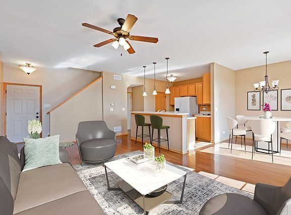 Just move in and start making memories in this stunning townhouse located in desirable Sable Ridge of Joliet! Entertain with ease in the open-concept floor plan with streams of natural sunlight from its large windows, wall-to-wall wide plank vinyl flooring and access to a large patio. The kitchen offers a great island with breakfast bar so you'll never miss out while hosting. A powder room and access to the 2-car garage complete the main level. Upstairs you will find the spacious primary bedroom with double walk-in closets as well as a desk nook, perfect for working from home. Also on the 2nd floor, 2 more generously sized bedrooms with fantastic closet space, a full bath, and convenient laundry. Enjoy all the wonderful amenities of Sable Ridge - clubhouse, pools, sports courts, parks and more! Located in Minooka school district and close to shopping, dining and everything Joliet has to offer. Seller's mortgage is assumable to qualifying buyers with a 2.87% rate! Also, a preferred lender offers a reduced interest rate for this listing, making it a perfect time to buy!