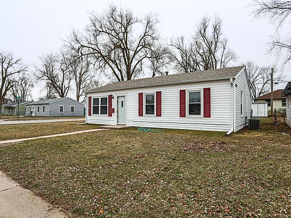Many updates throughout this home including windows, siding, roof, central air, kitchen and bathroom! All appliances stay including the washer and dryer! Lots of space here and a nice fenced corner lot! only 1 block from Carter Lake elementary.