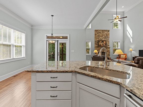 Custom built executive home in North Raleigh! The double door entry way opens to an inviting two story living room with plenty of natural light. The kitchen is made for entertaining with granite countertops, plentiful cabinet space, gas range, eating space at the bar that opens up to a two story living room. The dining room offers ample seating and a coffered ceiling. The main level is capped off by a 1st floor master with a walk in closet, dual vanities and walk in shower. The second floors has generous sized bedrooms, huge bonus room and an option for an office. The basement could be used as a mother in laws suite with a rec room, bedroom, full bathroom and walk in closet. Other highlights include tankless hot water heater, tons of storage, built in hood for the grill on the screened in porch. Low maintenance lot with a wooded buffer!