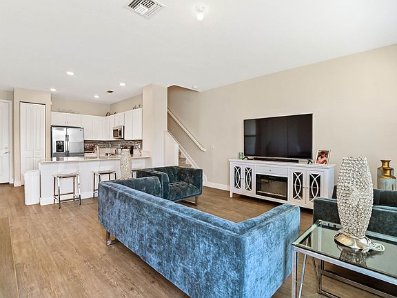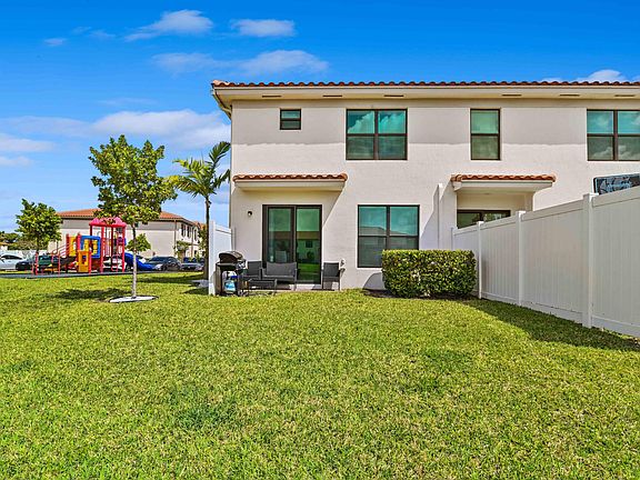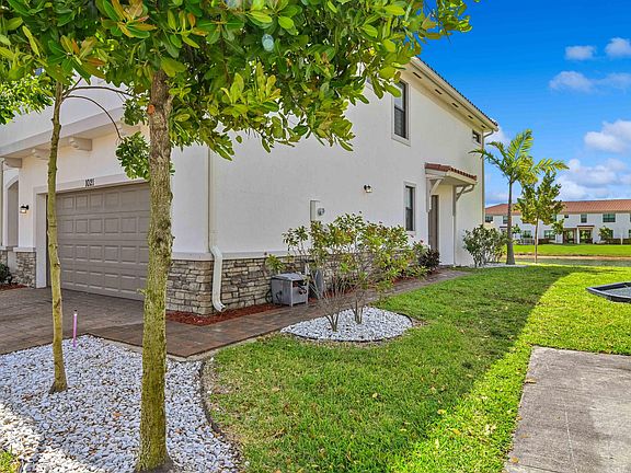 Stunning 4 bedroom 2 and half bath corner unit townhome with lake view in gated community of Mediterranea. The kitchen is updated and features stainless steel appliances and granite countertops. The Turnpike, I-95, Wellington, Boynton Beach, Downtown West Palm Beach, stunning local beaches, and three international airports can all be reached within a short distance. Upstairs features all 4 bedrooms, 2 full bathrooms and a full sized washer and dryer. Outside has beautiful lake views and a 2 car garage with extra storage inside.