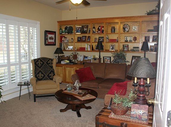 Bring your furniture and move right in. This 1991 sqft.home is ready for new owners. It has a desirable 4Br/2Ba split floor plan. An added bonus is a separate den/study with built in bookcase & cabinets. The master bath has updated lighting,, Jacuzzi tub, separate shower. All bedrooms have walk in closets. There are updated light fixtures & ceiling fans throughout the house and on the patio. All this plus Plantation shutters,Bosch dishwasher,newer garbage disposal, gas log fireplace, 2 hot water heaters, 2 yr.old arch. roof, 2yr. old a/c/heating systems, double garage, gutters, beautiful yard and more!