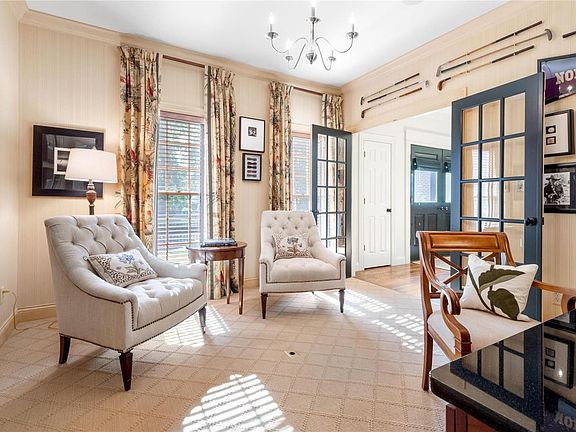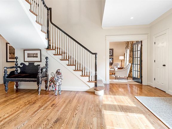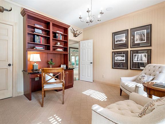 The bar was raised w/ this handsome classic Colonial custom Rehnquist home, positioned privately on .75 acres w/ a wide circle drive. Inside the feel is rich & luxurious w/ high ceilings, extensive millwork, beautiful hardwood flooring & high-end finishes. French doors favored in place of mere windows provide great indoor-outdoor flow from family room, breakfast room & primary bedroom to private patios & a saltwater lap pool. The gourmet kitchen w/ top appliances opens to the beautiful family room entertainment space w/ built-ins & fireplace. Guests & family alike will gravitate to the warm central living room space that boasts twin window seats, another fpl & custom book & art shelving. The cozy, study area w/ built-in cabinetry is yet another living area. Magnificent main floor owner's suite w/ fabulous closet & generous bath. Three additional bedrooms upstairs, one on-suite, two share a Jack & Jill. This is a home for all seasons, all lifestyles & all time!