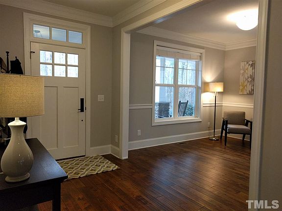 Like-new custom home on spectacular 2+ acre wooded, cul-de-sac lot in family neighborhood. Open bright floor plan, windows galore. Rich hardwoods on 1st floor. Gourmet kitchen, SS appliances, white cabs, designer granite. Luxurious upstairs master suite w/ pedestal tub, massive walk-in closet. Large 2nd fl bonus off 2 bedrooms. Downstairs guest suite. Oversized 3 car garage. Large rear deck. Backs up to add'l ~6 wooded acres, creek; great for exploring. Private yet convenient to Falls Lake and shopping