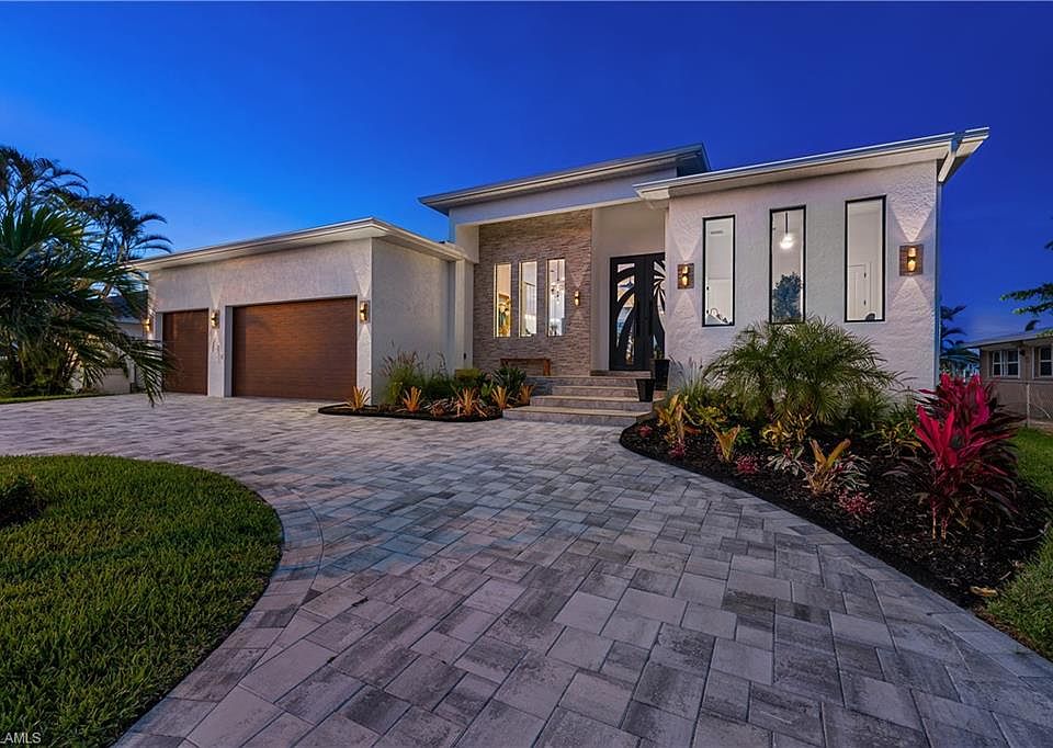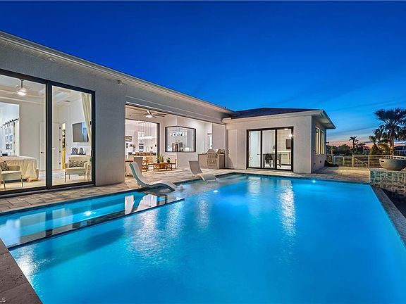 H8208. BRAND NEW CUSTOM BUILT! Check out this brand-new custom-built home located in the desired sought-after Cape Coral Yacht Club with beautiful water views and DIRECT gulf access. This open concept Cape Coral masterpiece features high-end fixtures, custom imported doors, floor to ceiling tile fireplace, a media room, new seawall, and a chef's kitchen which includes custom white cabinets, wine fridge, double ovens, instant hot water, 11' island with a commercial sink, and SO much more. Enjoy your own personal waterfront views while sipping a beverage at your stunning custom-finished pool and spa. You will truly enjoy and marvel at the details of this home for years to come. Spend quality time with the ones you hold dear, and make this truly stunning home yours, before it is gone. Furniture is negotiable.