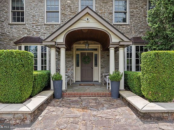 This 18th-century stone Quaker-built home exudes timeless elegance and historical charm. Set back from the road, the property offers a serene retreat. Upon entering, you are greeted by a nice reception hall with original millwork and moldings that highlight the home's rich history. The intricate woodwork, polished to a warm glow, sets the tone for the rest of the house. The main floor features multiple living spaces, each with its own distinctive character. The formal living room, adorned with detailed crown moldings and a stone fireplace, offers a cozy yet sophisticated ambiance. Adjacent to the living room, the study is decorated in wood paneled finishes, and provides a perfect retreat for reading or working from home. The spacious kitchen combines rustic charm with modern convenience. Custom wood cabinets line the walls and sprawling marble countertops provide any chef delight. The modern appliances are seamlessly integrated, ensuring functionality without compromising the home's historical integrity. Adjoining through the butler’s pantry, the dining room features a large bay window, offering picturesque views of the front grounds. The first thing you notice upon entering the great room addition is the impressive vaulted ceilings. Overhead, substantial wooden beams crisscross the ceiling, adding rustic character and paying homage to the home's historical roots. At the heart of the great room is a grand fireplace, framed by stone and sitting atop it’s hearth is a reclaimed wood mantel, providing a perfect place for displaying cherished items . Large arched windows adorn the walls of the great room, flooding the space with natural light and offering breathtaking views of your rear yard retreat. Discover the unveiled original well that was restored and integrated into the finished design. The home includes four generously sized bedrooms, each with its own unique character. The main quarter features an ensuite bath with a clawfoot tub, a separate shower, and walkthrough dressing area. Also on the second level, is a sun lit bedroom furnished with its own full bath. The penthouse level hosts the two remaining bedrooms that share a generously sized bathroom. In addition, you’ll find a lounge and wellness area. The outdoor area is a true extension of the home’s living space. A well-designed pool area with sun shelf, spa and waterfall, invites relaxation and recreation. The adjacent outdoor kitchen is perfect for entertaining, equipped with appliances and ample counter space. A cozy firepit area, surrounded by comfortable seating, provides an ideal spot for evening gatherings under the stars. Located in the esteemed area of Rydal, where you find upscale shops and eateries, this remarkable home offers a blend of historical craftsmanship and modern luxury, set on a large, private lot with exceptional outdoor amenities. It is a true testament to timeless design and quality.