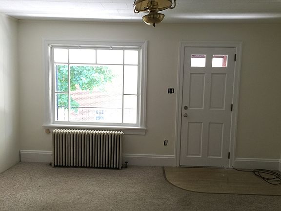 * Second and third floor three bedroom apartment with approximately 1,250 square feet of living space. * Gas heat for 2nd floor with central thermostat. Electric baseboard heat in third floor bedrooms. * Kitchen (15' x 12') with wood cabinets & ceramic tile flooring. Refrigerator and range included. Washer & Dryer hookups located in kitchen. * Living room (15' x 15') with LVT and closet. * Full bath (8.5' x 7') with shower over tub and surround, ceramic tile flooring. * Bedroom 1 (15 x 10') with LVT and closet located on 2nd floor * Bedroom 2 (13' x 12') with carpet and closet located on 3rd floor * Bedroom 3 (13' x 12') with carpet and closet located on 3rd floor * Walk-in hall closet located in 3rd floor hallway * Covered porch (15' x 6') on second floor entrance * On-street parking in front of the house is available. Off-street parking at nearby lot may be possible. Owner pays heat, water/sewer, trash, lawn care and snow removal. Tenant pays electric including heat for 2 bedrooms, Cable TV/Internet.