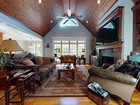 Executive home with all the ammenties! 2 kitchens with Granite, 2 great rooms with fireplaces,Garage for lower level and main level, Exercise, safe/storm room office, and theater room upstairs w/ wet bar.Plantation shutters, Cathedral ceiling in MBR,Office,and DR. Extensive landscaping, Courtyard w/kidney shape pool just installed last year. Lower level walk right out into Courtyard and main level walk out to Covered Porch. 5432 sq feet heated and cooled including garage in basement area!