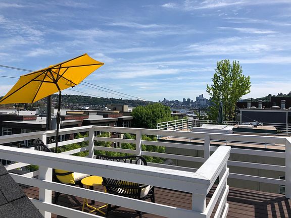 First time on the rental market in over 10 years! This unit is one you will never want to leave! This is NOT your average apartment! Recently remodeled as the owner's suite, this delightfully elegant 2 bedroom Penthouse Suite boasts the following unique features: Unobstructed view of Lake Union and the Seattle Skyline Private rooftop deck Floor-to-Ceiling windows on South wall Loads of natural light Custom Tile Bathroom with quartz counters Large leaded glass windows on all four sides Window seats with lake views Stainless steel appliances Dishwasher Washer/Dryer Huge master bedroom Large closets Small, quiet building 1 Off-street parking spot included Walk to all Fremont offers Burke Gilman bike trail 1 block from multiple bus lines EXCEPTIONALLY QUIET, MATURE, NEIGHBORS (NO PARTYING) To take a tour of this apartment, please call ( This is NOT your average apartment! Recently remodeled as the owner's suite, this incredibly unique two bedroom Fremont home boasts magnificent views of Lake Union and the Seattle skyline. The dramatic two bedroom penthouse suite perches atop a gorgeous Victorian style Fremont building. Sunlight streams in from all sides through plentiful large leaded glass windows, and floor-to-ceiling windows on the south wall. The vaulted living room opens to a private rooftop deck with unsurpassed views of the Fourth of July fireworks. Recently remodeled with new bathroom and kitchen, windows, ceiling fans, bar, carpet and paint. Enjoy gourmet cooking with the new stainless steel appliances and dishwasher. Curl up on one of the serene window seats with a steamy cup of coffee and gaze out on to Lake Union while contemplating the finer things in life. Walk to cool Fremont shops, cafes, Adobe and Getty Images. Downtown, the U.W. and S.P.U. are just 5 minutes away. Microsoft is just across the Lake and the Connector passes directly past your front door. Only 3 blocks from the Burke Gilman bike trail. Multiple bus lines are within 1 block. Garage and other off-street parking are available. Cable and Internet are also available. To protect the unique historical charm of this building, smoking and pets are not permitted. GIVEN THE LOCATION OF THIS APARTMENT DIRECTLY ABOVE YOUR NEIGHBORS, RESIDENTS MUST PREFER A VERY QUIET LIFESTYLE. For more information, please call ( 1 year lease, utilities not included.