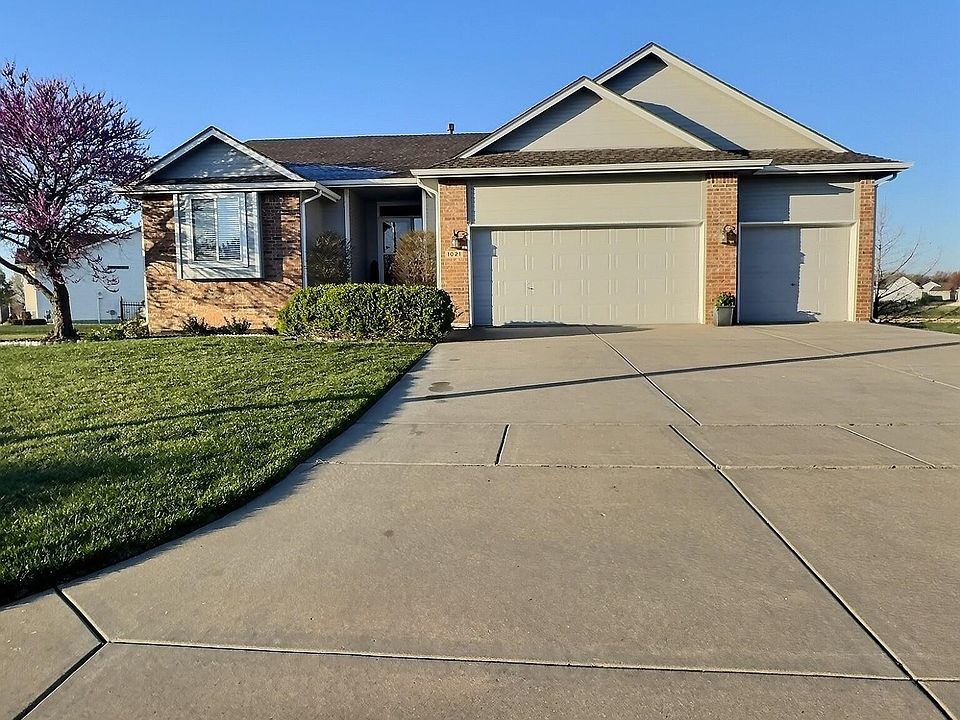 Beautiful Home in Pine Meadow - Corner Lot on Pond with stunning sunset views. 4 Bedrooms with 3 Full Bathrooms. Ranch style with Walk Out Basement. Luxury Hardwood Laminate Floors on the Main Level. Lots of natural light streaming throughout. 3 Car garage. Spacious basement Living area with Finished area with potential (Roughed in for Wet Bar) or could be used for exercise equipment set up. Large separate storage room. Includes Water Softener. Newer roof, Newer HVAC, Newer Hot Water Heater and Solar Panels installed. Sprinklers on an irrigation well. Appealing and Easy to maintain landscaping on nearly a half acre lot overlooking water. Right next to charmingly lit (At night) bridge. You will love calling this your home!
