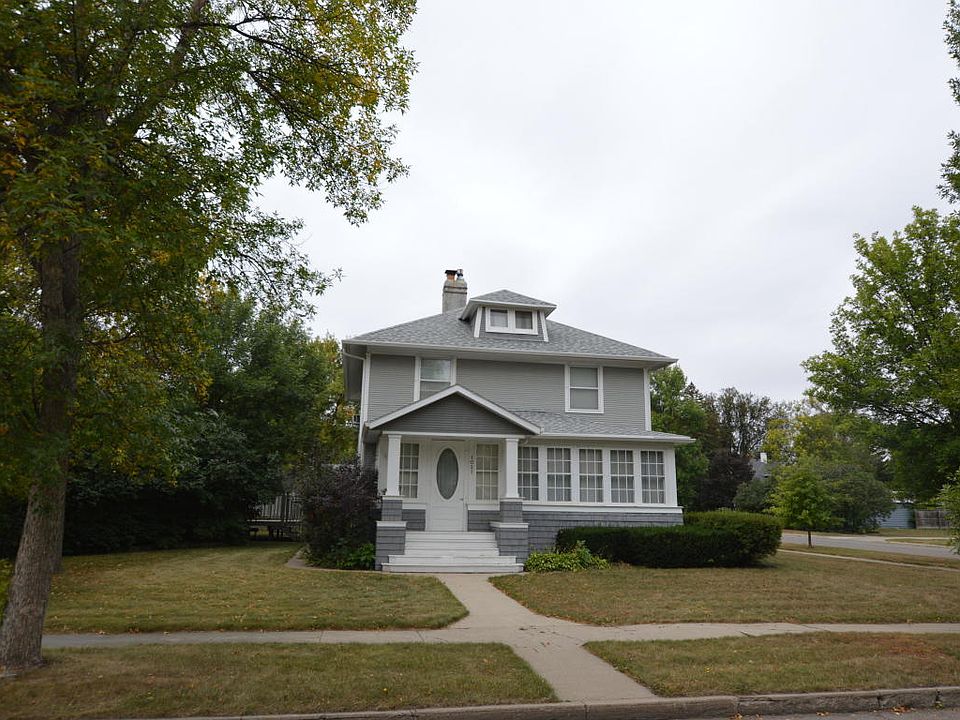 Enjoy the luxury of large-sized rooms in this 5 bedroom beauty! The woodwork throughout will amaze you, as well as the modern kitchen and high ceilings. A cozy gas fireplace compliments the living room which has french doors to a spacious enclosed front porch. This home has 4 bedrooms all on one floor, main floor laundry, and updated baths. The finished 3rd story makes for a great bedroom, rec area, or hobby room. With a stately yard and a 4+ stall garage, the possibilities are endless!
