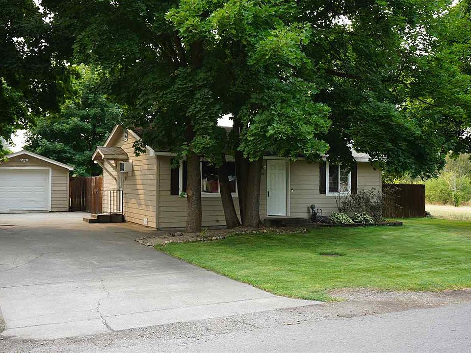 This charming 2BR/1BTH rancher with a 1 car detached garage sits on an oversized lot on a quiet street and is move in ready. Newly remodeled with hardwood floors throughout and an open kitchen with custom cabinets, granite counters and a tiled floor. A large sliding door opens up to an oversized backyard oasis. Although you are in town you will feel like you're in the country with oversized fence, fire pit and chicken coop in the back yard and sprinkler system with the potential to build your dream shop