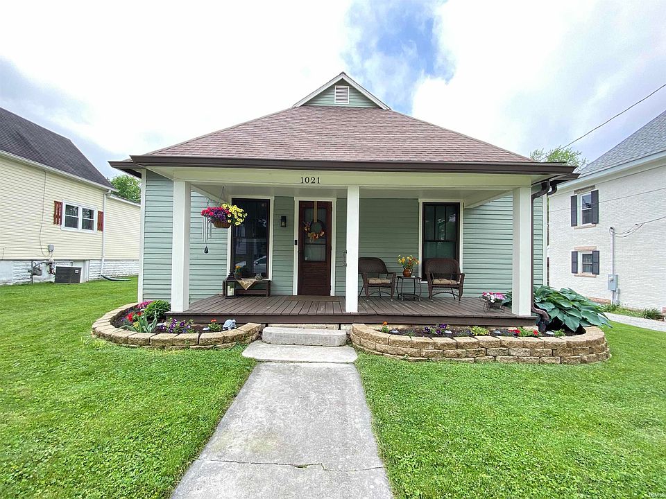 Looking to downsize or purchase your first home? Take a look at this cozy one bedroom home that's big on style! Timeless is the best way to describe this classic bungalow. Fully renovated from top to bottom, it has been perfectly preserved to honor its historic charm, rich colors, and deep walnut wood tones. The front porch could not be more inviting and full of color with the pristine landscaping and flower beds. The deep rich tones of the hardwood floors are paired perfectly to the custom, walnut framed Andersen windows with custom blinds, original hardwood trim with architectural details, 10 foot ceilings, and a large primary suite with the most serene bathroom and oversized floor to ceiling walk-in closet. The kitchen is a true Dream Kitchen with soapstone countertops, custom cherry cabinets, and high-end stainless steel appliances. Luxury comes to mind when you walk into the flex room that could be used as a casual dining space, home office, or even a guest area with a full bath. Outside enjoy the private deck space, detached 1 car garage, off street parking, and large flat yard. New wiring, plumbing, some new plaster, custom kitchen, all new baths, basement for storage, and laundry area/mudroom area in the rear of the home.