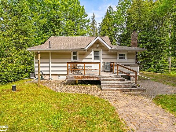 First time offered on 12 Mile Lake, this 1930's vintage cottage has gone through interesting transformations within the same family through the years. On the exterior there have been several upgrades, structural updates with new siding and windows. The entire building was raised then lowered on to a block foundation with concrete pad. Other improvements include propane forced air furnace and air conditioning. Upon entering the cottage you will be introduced to it's original history. This is the moment your creativity will come alive. The property itself, although smaller than many, has good features including a post and beam two storey barn style garage with a spacious loft that has many uses. Two other smaller cabins at the back of the property, one would be a good bunkie, the other for tools. Across the quiet road is the waterfront with shallow entry and a terrific dock set up. You'll have full sun all afternoon. There is also a lake side storage shed with hydro. The cottage would be considered partially winterized, it appears the existing heated water line is not functioning.