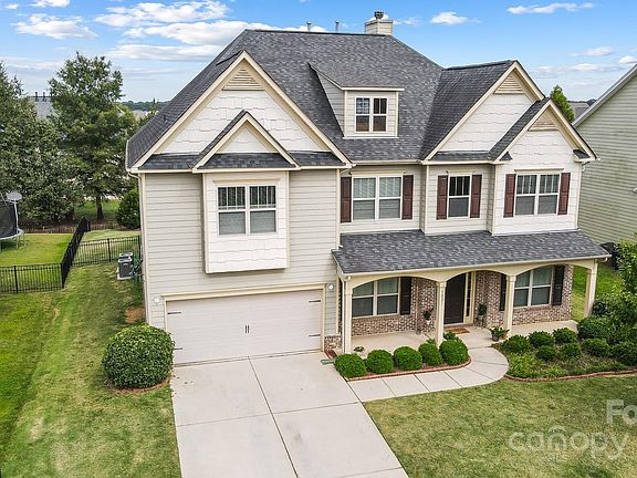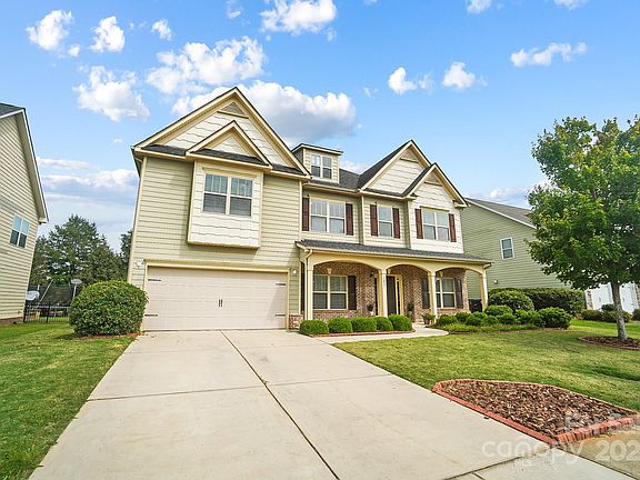 $10,000 PRICE IMPROVEMENT! GREAT PRICE! DON'T MISS OUT ON AN AMAZING HOME! Fabulous front porch greets you as you enter this beautiful home boasting 5BR's/3.5 baths. Two story entry invites you in. Formal dining w/extensive moldings and an expansive living room. Guest bedroom on the main! Oversized great/family room features wood fireplace, tons of natural light, and new carpet. Great room opens to an enormous kitchen that includes granite counters, tile backsplash, gas range, and plenty of storage. As you go up the newly carpeted stairs you will find a loft area. Primary retreat w/tray ceiling, ensuite bath with granite counters, stand-alone shower, garden tub & large walk-in closet. Secondary BR with full bath next to the master suite. Expansive bonus room w/tons of natural light, and a wet bar with granite counters. Two more secondary BRs with full bath between them. Outside includes covered patio, and fully fenced backyard! Great amenities with just added pickle ball courts!
