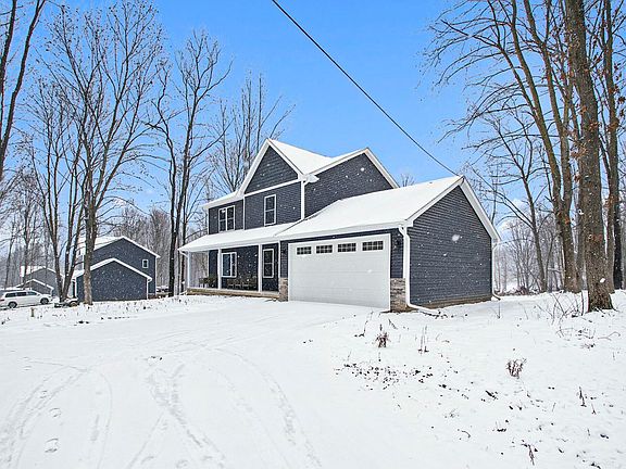 This beautiful 2-story home nestled on 2 acres in the Hastings School District. Offers 3 bedrooms & 2.5 baths, with room to grow. The main floor boasts an open floor plan, with a spacious kitchen granite countertops, tile backsplash, pantry and snack bar. The cabinets have varying heights and depths and elegant crown molding, adding a touch of sophistication to the heart of the home. Adjacent to the kitchen is an informal dining area with sliding doors that open to a lovely backyard deck, ideal for entertaining or enjoying a quiet morning coffee. The family room is generously sized, providing ample space for relaxation and or gatherings. All bedrooms are located on the 2nd floor, each offering ample closet space. The owners suit is a true retreat with its tile flooring, custom-tiled shower, and linen storage. The lower level is thoughtfully framed and plumbed, making it ready for a 3rd full bath and 4th bedroom, allowing for future expansion and customization. This year old quality built home with 2x6 construction, solid core doors, high-efficiency furnace, whole house water filtration system and high-performance Low E double-hung windows. The home also includes an 18' x 8' insulated garage door with an opener, providing both convenience and security. Not to mention, this home has high speed internet. This house is more than just a place to live, it's a home waiting for you to make it your own. Call for you personal tour!
