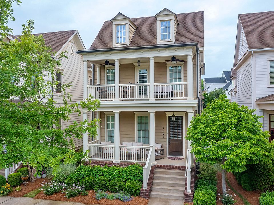 Fantastic home in highly desirable Berry Farms!! This home has so many features from a charming New Orleans style rocking chair front porch on the main level & another walkout porch on the upstairs level, to the hardwood floors, granite countertops, adorable light fixtures, stainless steel appliances and a beautiful trim package. Walking distance to restaurants and shops. This home also has a rear entry garage, and a covered side patio! Plus all lawn maintenance & landscaping is included in the HOA!