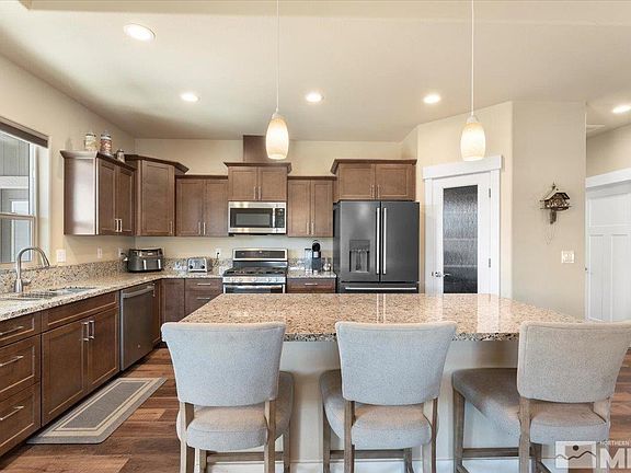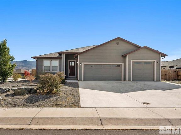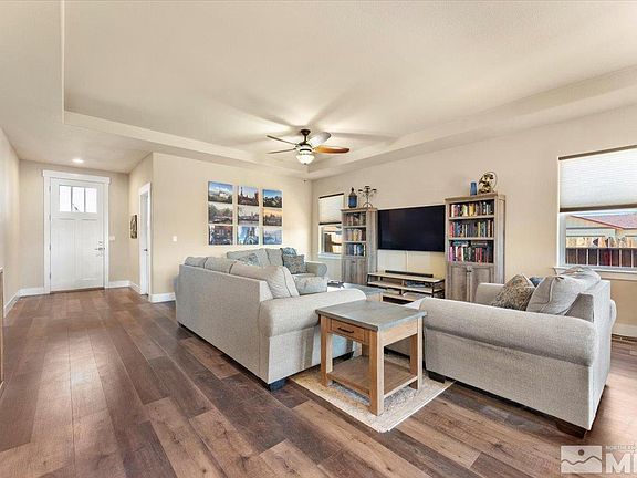 Incredible space in this oversized open-concept home! Beautiful hill-side views and natural light pour in the many windows, highlighting the modern finishes of the home-- from the wood-look floors to the granite counters in the kitchen and on-trend tile and upgrades in the bathrooms. The great-room style home flows effortlessly to the large covered patio, and well-sized yard, perfect for indoor and outdoor entertaining. Located in a prime area for commuting to the Tahoe-Reno Industrial Center!, MOVE IN READY! This home is recently built in 2018 and was upgraded from head to toe. The wood-look laminate floors are the perfect tone and style to fit your decor, and have held up incredibly well with their dogs. Upgraded doors, handles, faucets, counters and cabinets-- this home is perfect for the person who wants a new home without the new price tag! This is an incredible set up for a person looking for a home they can effortlessly move into