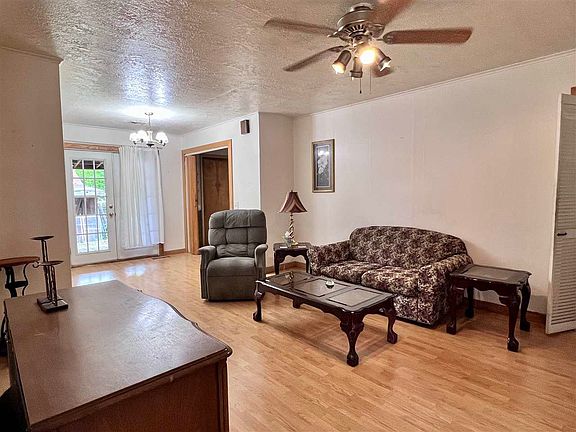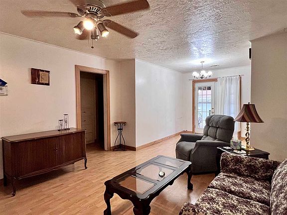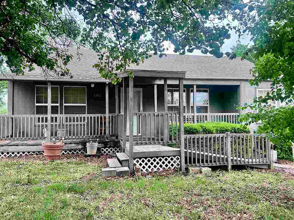Need a shop and large lot?? Then look no further!! This 3 bedroom, 1 bath home sits on a large lot with a fenced in yard and a double garage with a full bathroom off the alley. The covered front porch welcomes guest and is great for morning coffee. The large eat-in kitchen has a bar for breakfast/lunch and all appliances remain with the property. Off the double patio doors you will find the covered back porch and large yard for cookouts and entertaining. Call today for your private tour.