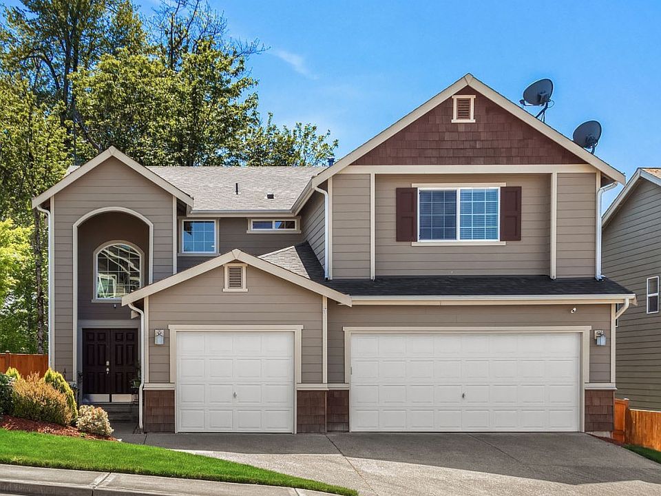 Charm of a craftsman in a modern build! This pristine home, situated in a quiet neighborhood & next to a greenbelt, boasts 5 beds/3 baths (1 bed/bath on main), a 3-car garage, & stunning valley views. Enjoy multiple open-concept living/entertaining spaces, 17 ft entry way, spacious master w/ 5-piece bathroom ensuite, & upgraded kitchen w/ granite countertops & SS appliances. Tons of storage & abundant natural light. Low maintenance yard w/ private patio. Great location! Easy access to 405 & I5.
