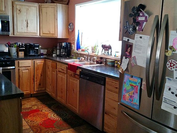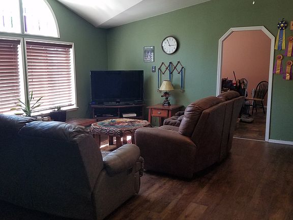 1996 Mfg home with 3 beds, 2 baths with 1716 sq ft., Fenced front & backyard, Recently painted exterior, New front covered porch & covered deck, Metal roof installed last year, Floor plan open with large windows, Light fixtures & most flooring new, Kitchen has hickory cabinets along with new stainless steel appliances, Lots of Storage, Chicken coup, RV parking!
