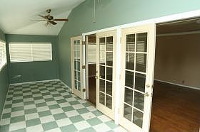 This 2 bedroom, 2 bath farmhouse on nearly 2 acres of land provides country living while still conveniently close to the city. The kitchen offers an electric smooth top range, dishwasher, microwave, ceramic tile covered island, breakfast bar and plenty of cabinets and storage area. The family room has 2 sets of French doors leading into a bonus room and the den has a built-in bookcase. There are ceiling fans, wooden floors and window coverings throughout.