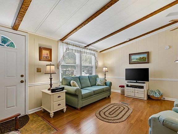 Charming and well-maintained 2BR/2BA home featuring an open, light-filled floorplan. Spacious living area flows seamlessly into the dining area and updated kitchen, creating a perfect space for everyday living or hosting guests. Kitchen features crisp white cabinetry, solid-surface counters, a center island, and plenty of storage. Both bedrooms are spacious and cozy, offering comfortable retreats for rest and relaxation. The primary bath includes a large walk-in shower with glass doors and updated finishes. A dedicated laundry area, well-kept flooring throughout, and thoughtful touches like neutral paint tones and classic trim make the home feel clean, fresh, and truly move-in ready. Bright, enclosed sunroom with heating and cooling, and a spacious brick patio are perfect for relaxing or outdoor entertaining. Detached 10X12 storage shed/workshop with power. Short walk to pool and clubhouse. Primary residence, vacation home, or investment property, this home is the perfect blend of charm, comfort, and convenience.